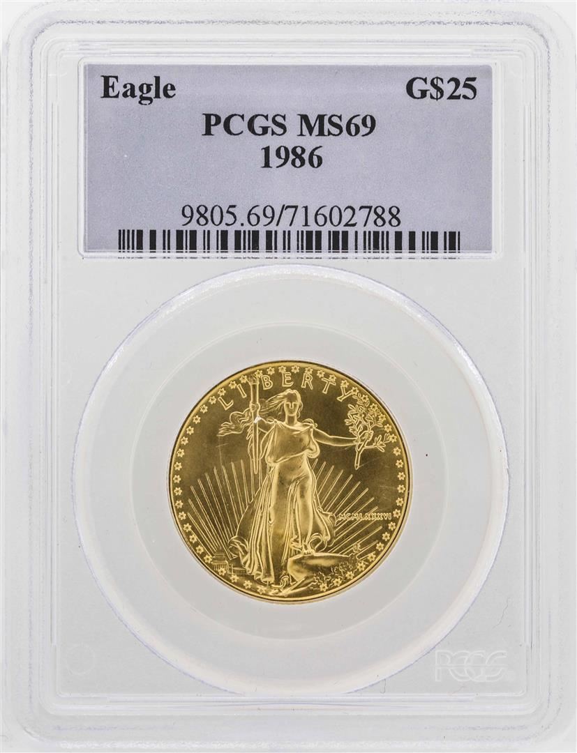 One 1986 $25 American Gold Eagle Coin PCGS MS69 . PCGS Graded.