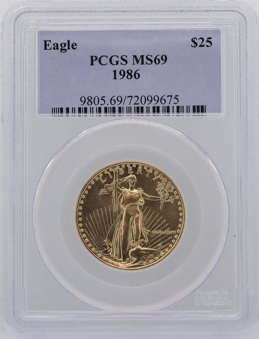 One 1986 $25 American Gold Eagle Coin PCGS MS69. PCGS Graded.