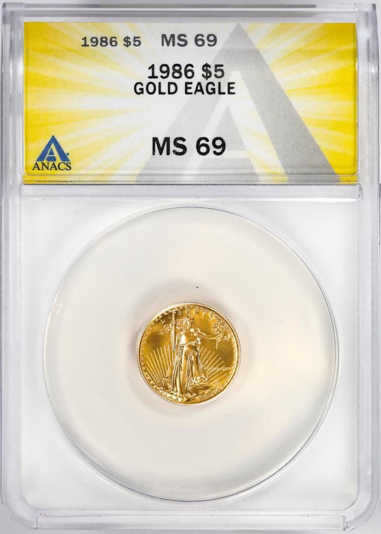 One 1986 $5 American Gold Eagle Coin ANACS MS69. ANACS Certified.