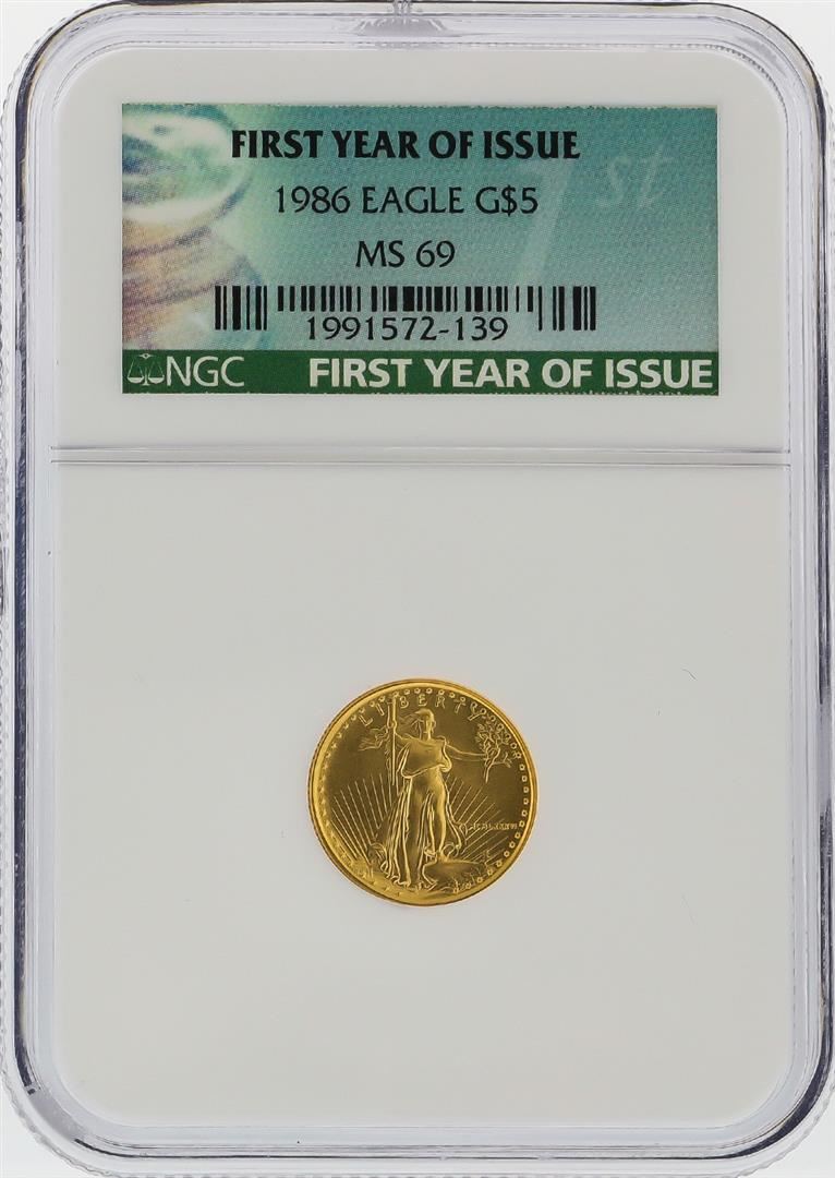 1986 $5 American Gold Eagle Coin First Year Issue NGC Graded MS69