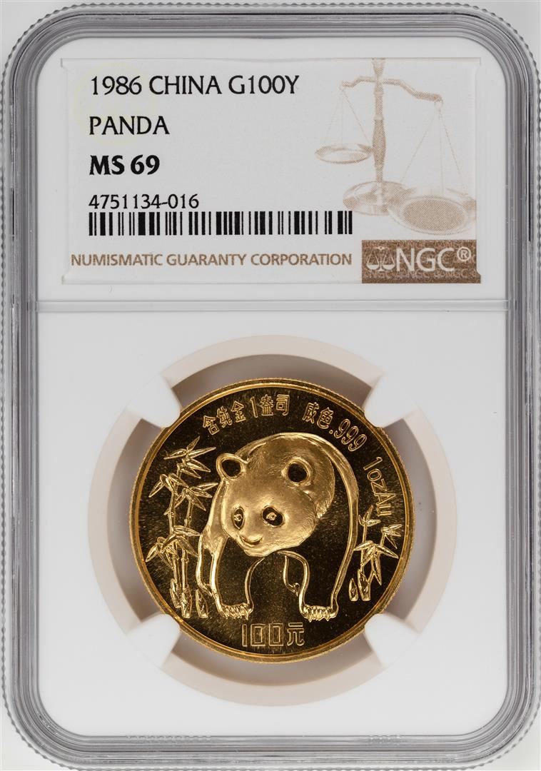 One 1986 China 100 Yuan Panda Gold Coin NGC MS69. NGC Certified.