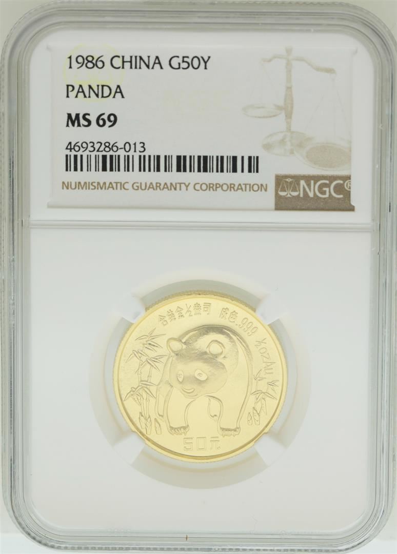 One 1986 China 50 Yuan Panda Gold Coin NGC MS69. NGC Certified.
