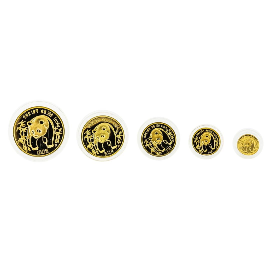 One 1986 China Panda Gold Coin Proof Set. Included in this set there are (1) 100 Yuan, (1) 50 Yuan, (1) 25 Yuan, (1) 10 Yuan, and (1) 5 Yuan gold coin.
