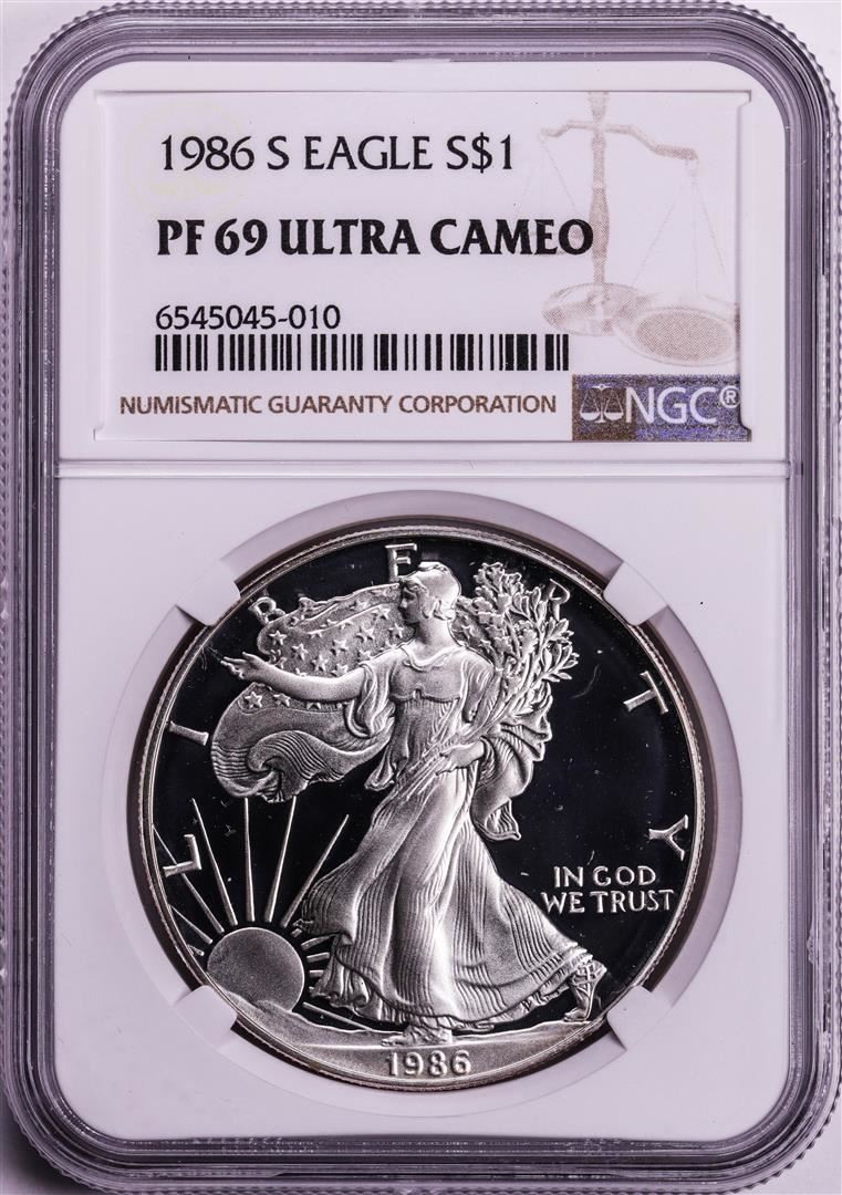 1986-S $1 Proof American Silver Eagle Coin NGC PF69 Ultra Cameo