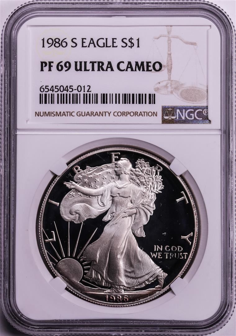 1986-S $1 Proof American Silver Eagle Coin NGC PF69 Ultra Cameo