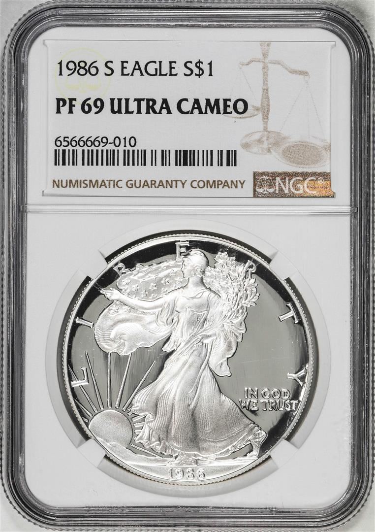 1986-S $1 Proof American Silver Eagle Coin NGC PF69 Ultra Cameo