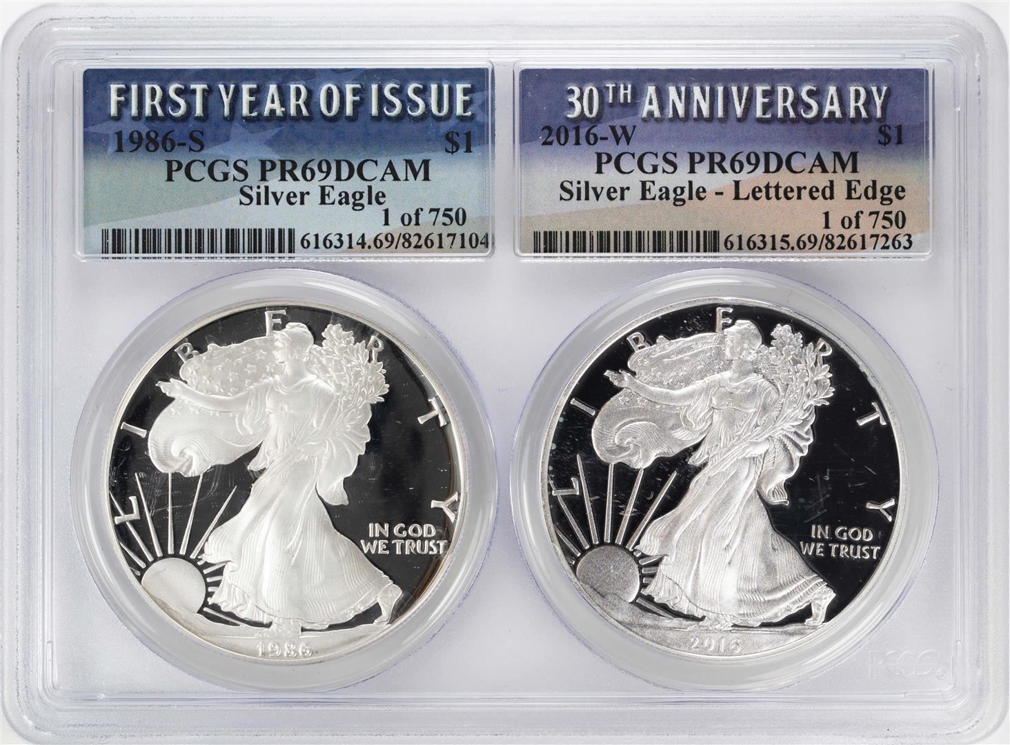 1986-S & 2016-W $1 Proof American Silver Eagle Coin Set PCGS PR69DCAM