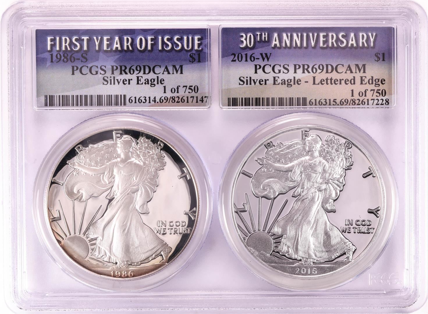 1986-S & 2016-W $1 Proof American Silver Eagle Coin Set PCGS PR69DCAM