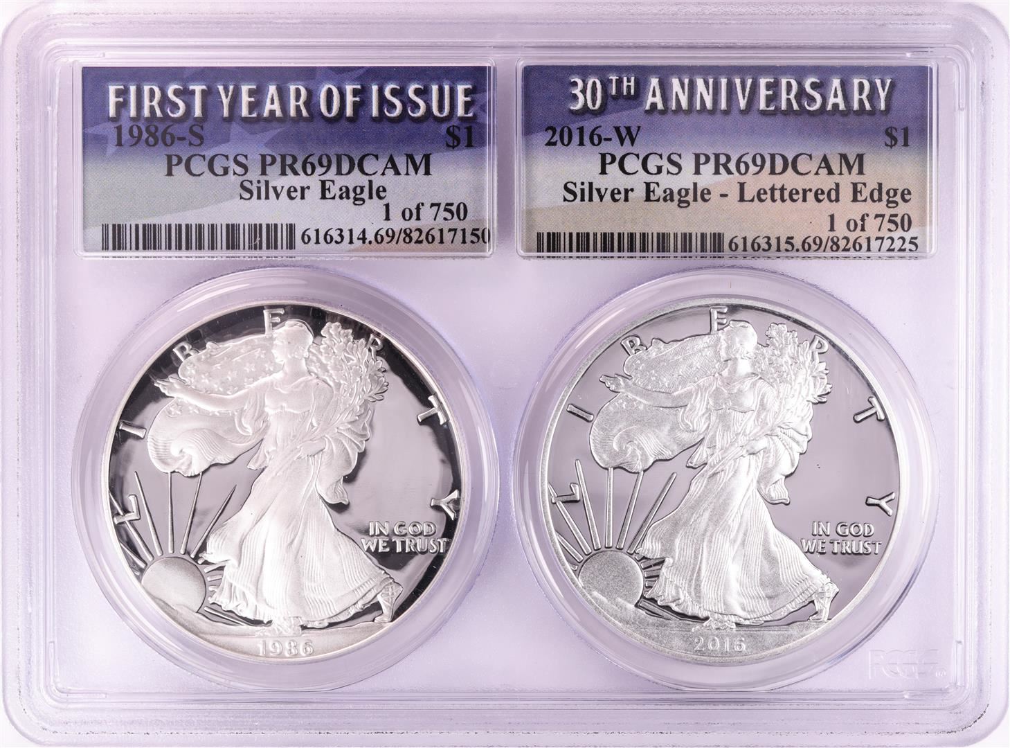 1986-S & 2016-W $1 Proof American Silver Eagle Coin Set PCGS PR69DCAM