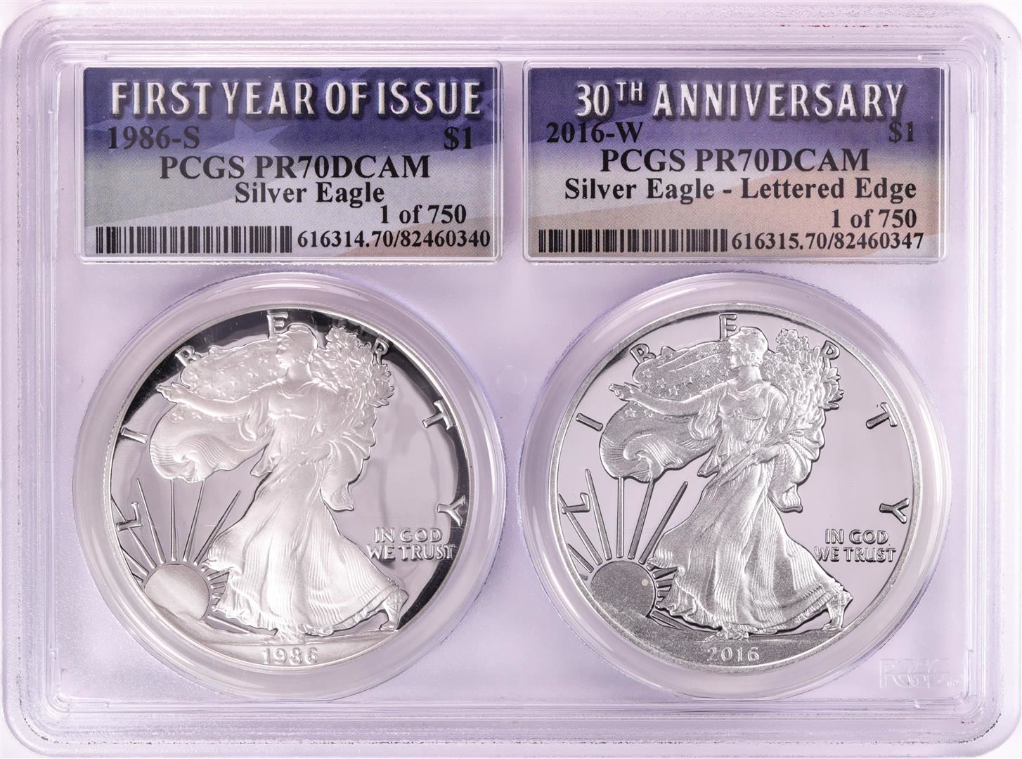 1986-S & 2016-W $1 Proof American Silver Eagle Coin Set PCGS PR70DCAM