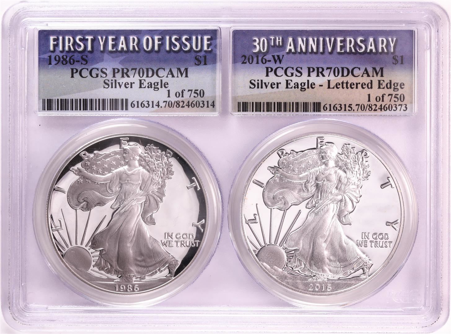 1986-S & 2016-W $1 Proof American Silver Eagle Coin Set PCGS PR70DCAM