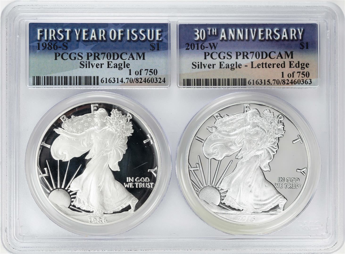 1986-S & 2016-W $1 Proof American Silver Eagle Coin Set PCGS PR70DCAM