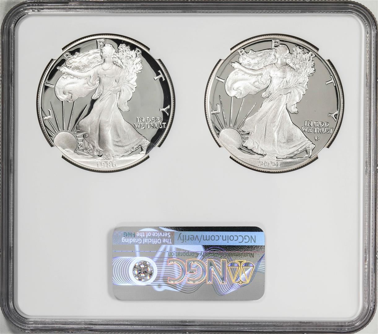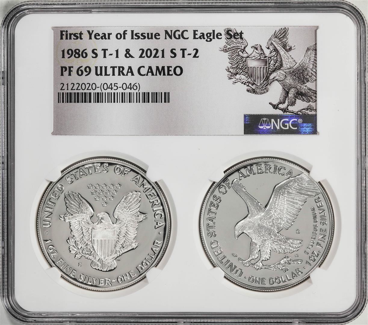 1986-S & 2021-S First Year of Issue $1 Proof Silver Eagle Coin Set NGC PF69 Ultra Cameo
