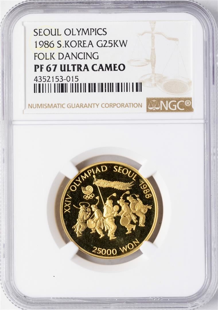 One 1986 S. Korea 25,000 Proof Won Seoul Olympics Gold Coin NGC PF67 Ultra Cameo. NGC Certified.