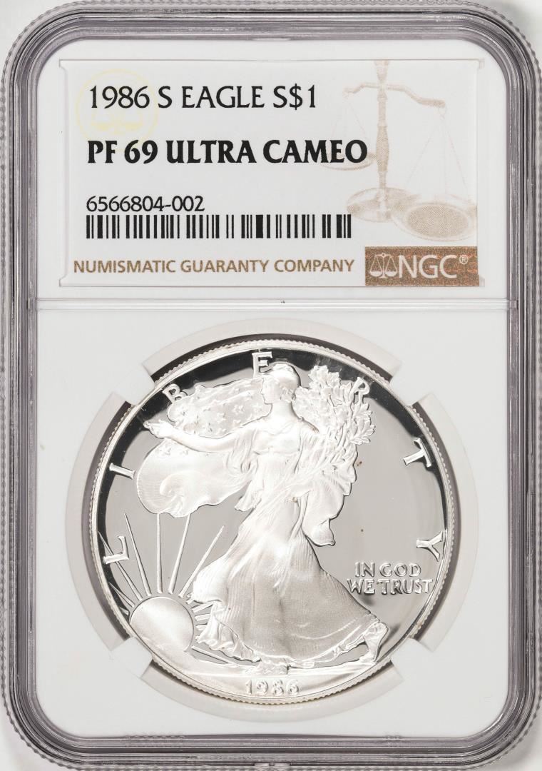 1986-S Proof $1 American Silver Eagle Coin NGC PF69 Ultra Cameo