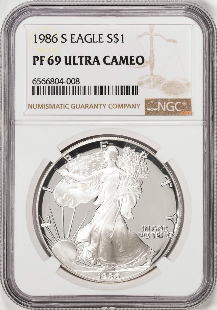 1986-S Proof $1 American Silver Eagle Coin NGC PF69 Ultra Cameo