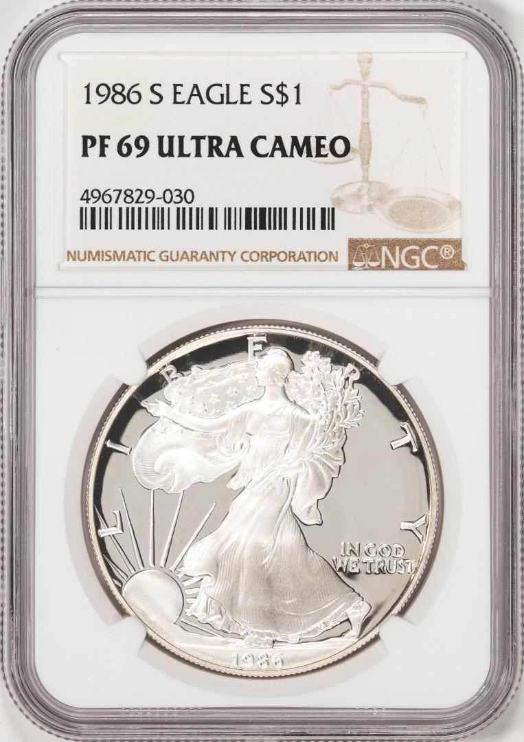 1986-S Proof $1 American Silver Eagle Coin NGC PF69 Ultra Cameo