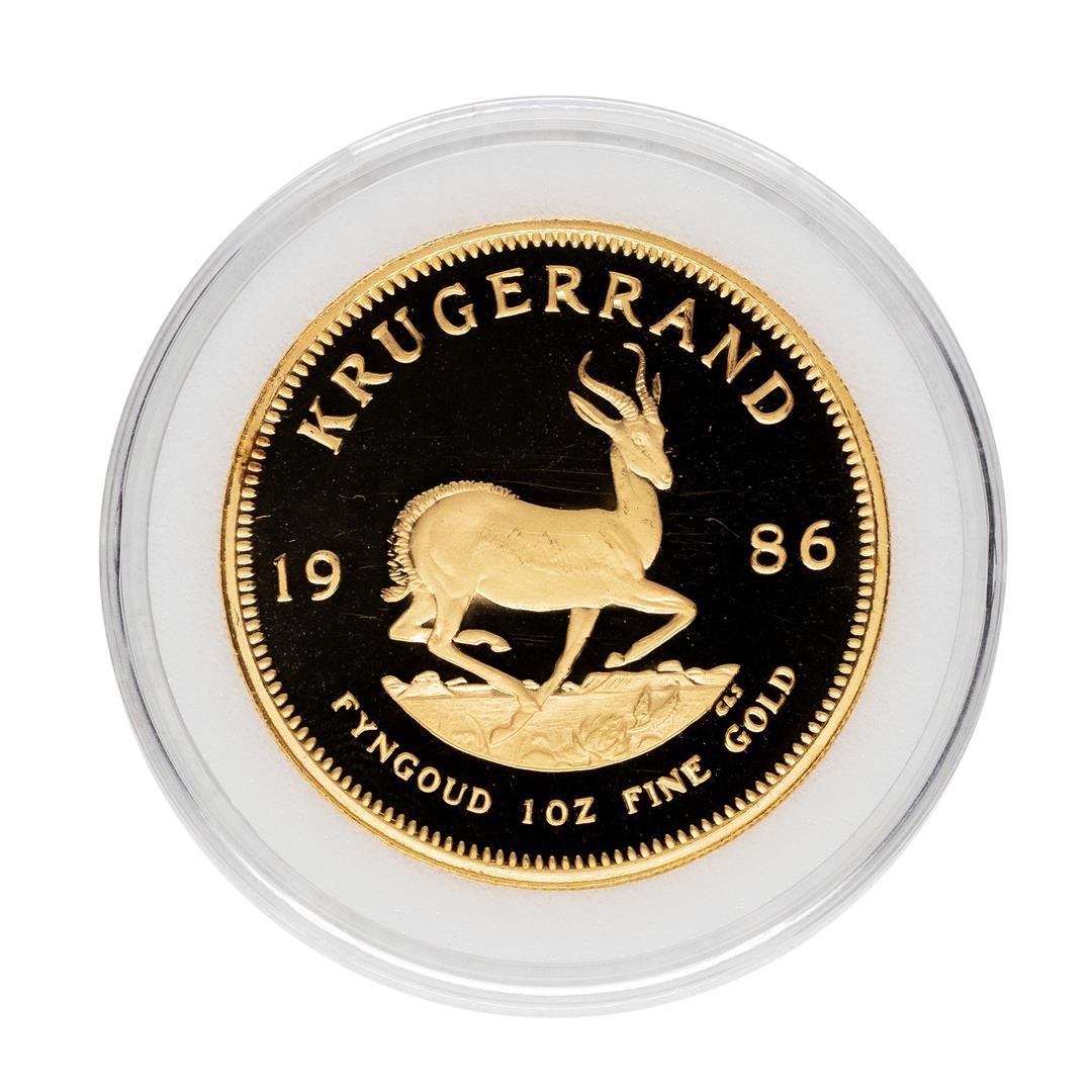 One 1986 South Africa Proof Krugerrand 1 oz. Gold Coin.