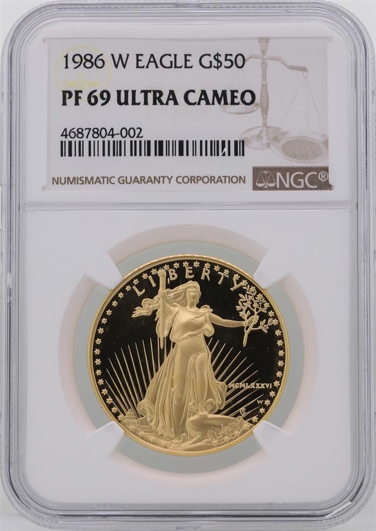 One 1986-W $50 American Gold Eagle Coin NGC PF69 Ultra Cameo. NGC Certified.
