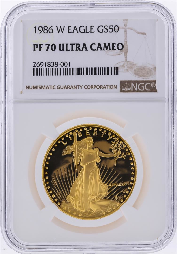 One 1986-W $50 American Gold Eagle Coin NGC PF70 Ultra Cameo. NGC Certified.