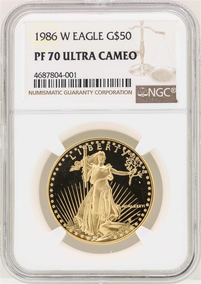 One 1986-W $50 American Gold Eagle Coin NGC PF70 Ultra Cameo. NGC Certified.