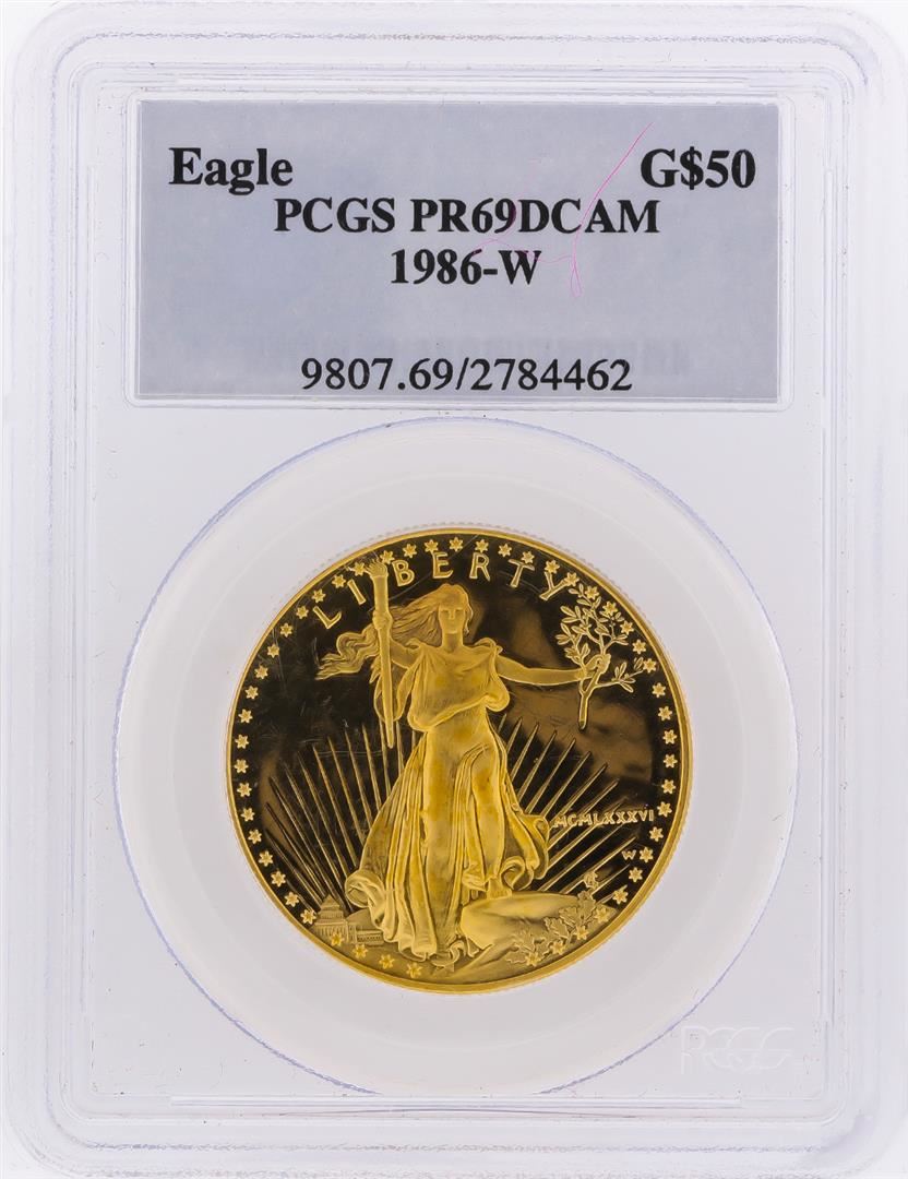 One 1986-W $50 American Gold Eagle Coin PCGS PR69DCAM. PCGS Graded.