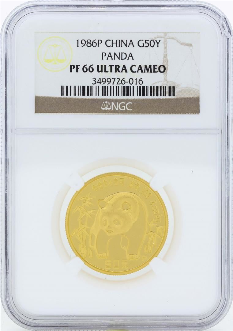 One 1986P China 50 Yuan Gold Panda Coin NGC PF66 Ultra Cameo. NGC Certified.