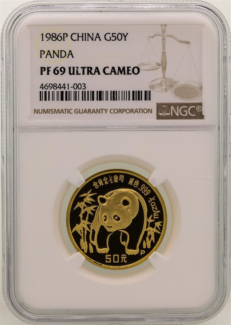 One 1986P China 50 Yuan Panda Gold Proof Coin NGC PF69 Ultra Cameo. NGC Certified.