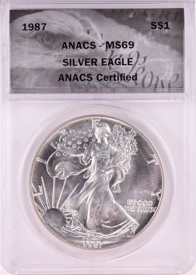 One 1987 $1 American Silver Eagle Coin ANACS MS69. ANACS Certified.