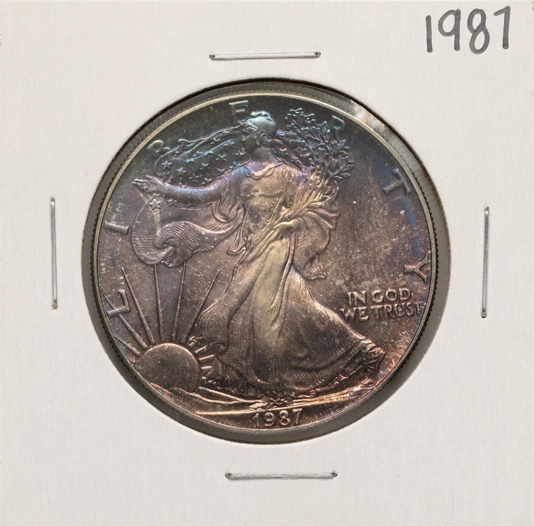 One 1987 $1 American Silver Eagle Coin Amazing Toning.