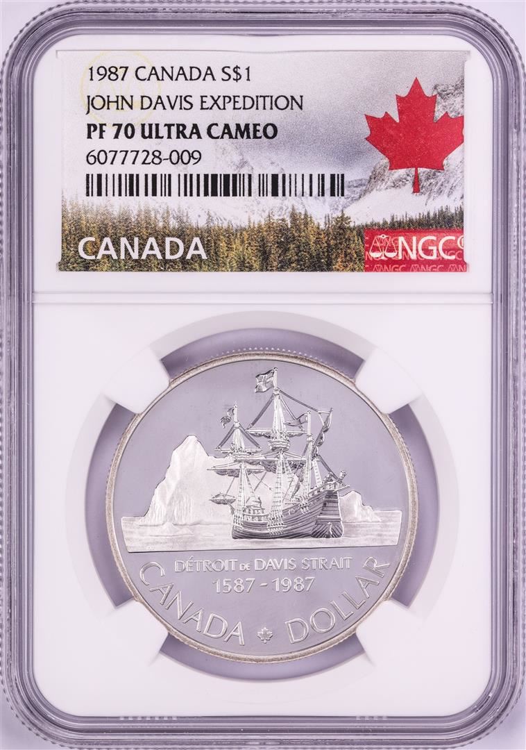 1987 $1 Canada Proof John Davis Expedition Silver Dollar Coin NGC PF 70 Ultra Cameo