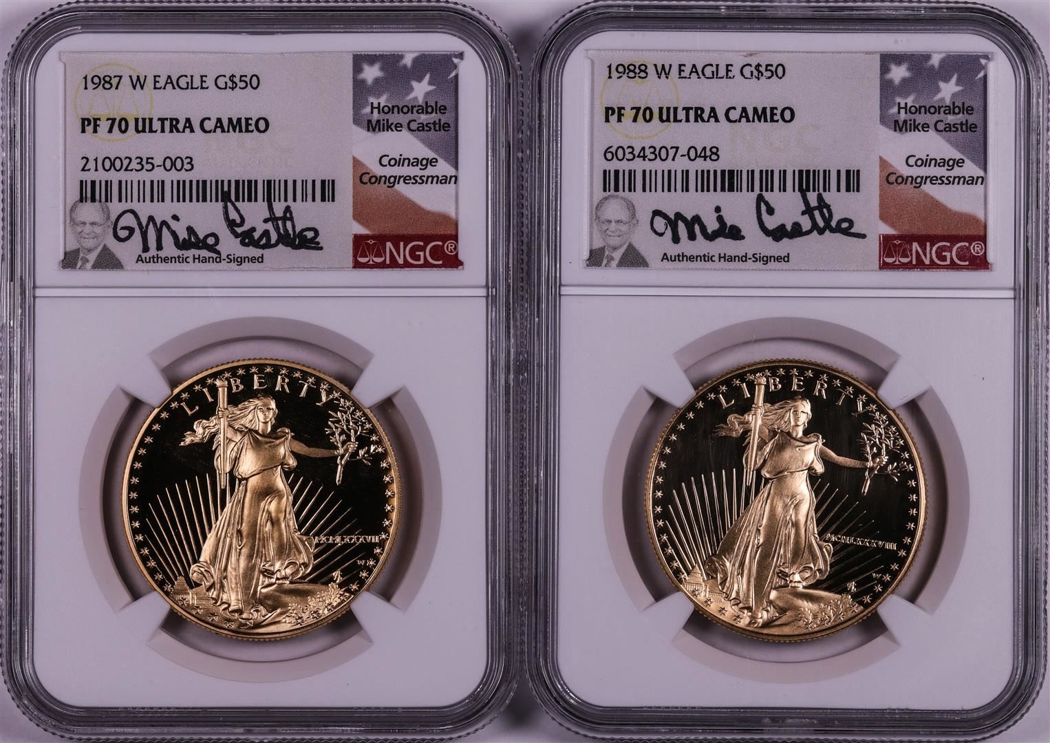 One 1987-1988 $50 Proof American Gold Eagle Coins NGC PF70 Ultra Cameo Castle Signature. NGC Certified.
