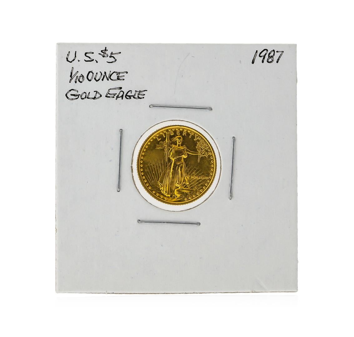 One 1987 $5 1/10 oz. American Eagle Gold Coin.
