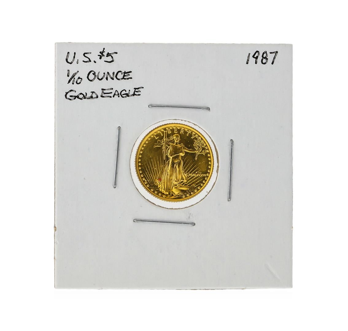 One 1987 $5 1/10 oz. American Eagle Gold Coin.