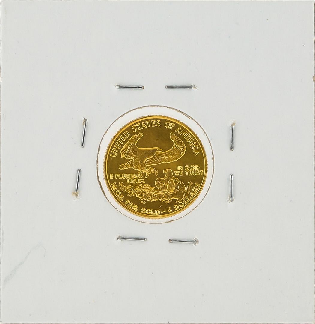 One 1987 $5 1/10oz American Gold Eagle Coin.