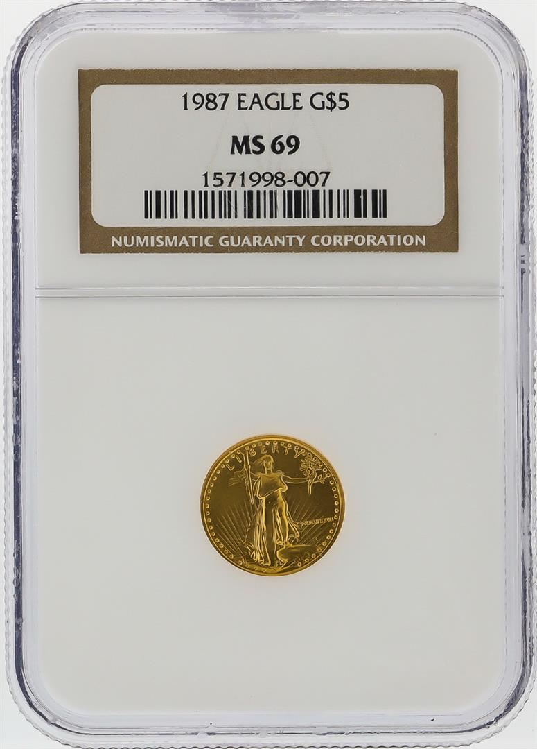 One 1987 $5 American Gold Eagle Coin NGC Graded MS69. NGC Certified.