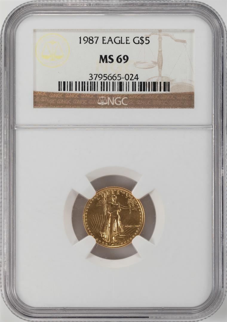 One 1987 $5 American Gold Eagle Coin NGC MS69. NGC Certified.