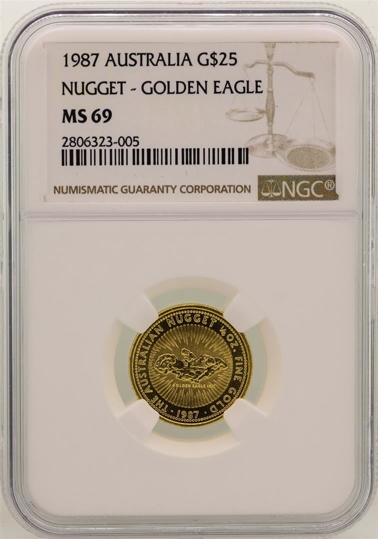 One 1987 Australia $25 Gold Nugget Coin NGC MS69. NGC Certified.