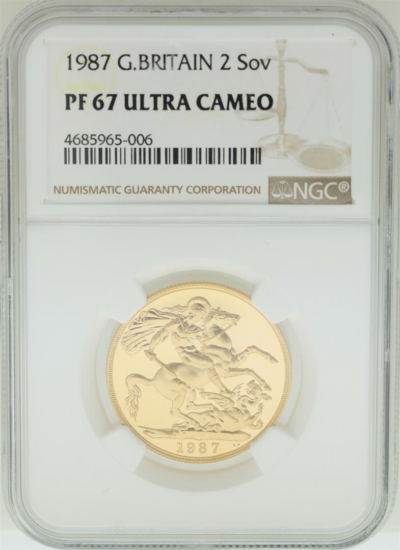 One 1987 Great Britain 2 Sovereign Gold Coin NGC PF67 Ultra Cameo . NGC Certified.