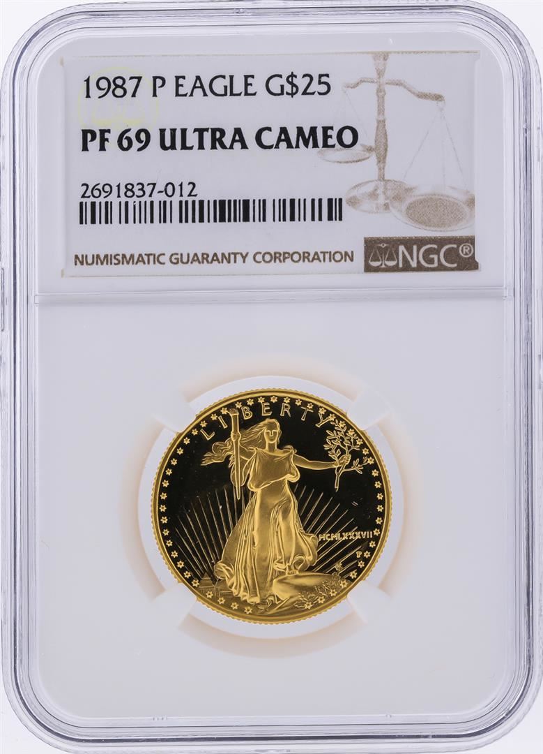1987-P $25 American Gold Eagle Coin NGC Graded PF69 Ultra Cameo