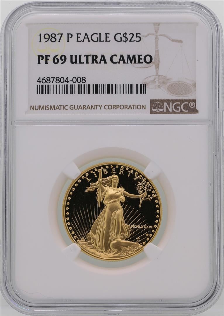 One 1987-P $25 American Gold Eagle Coin NGC PF69 Ultra Cameo. NGC Certified.