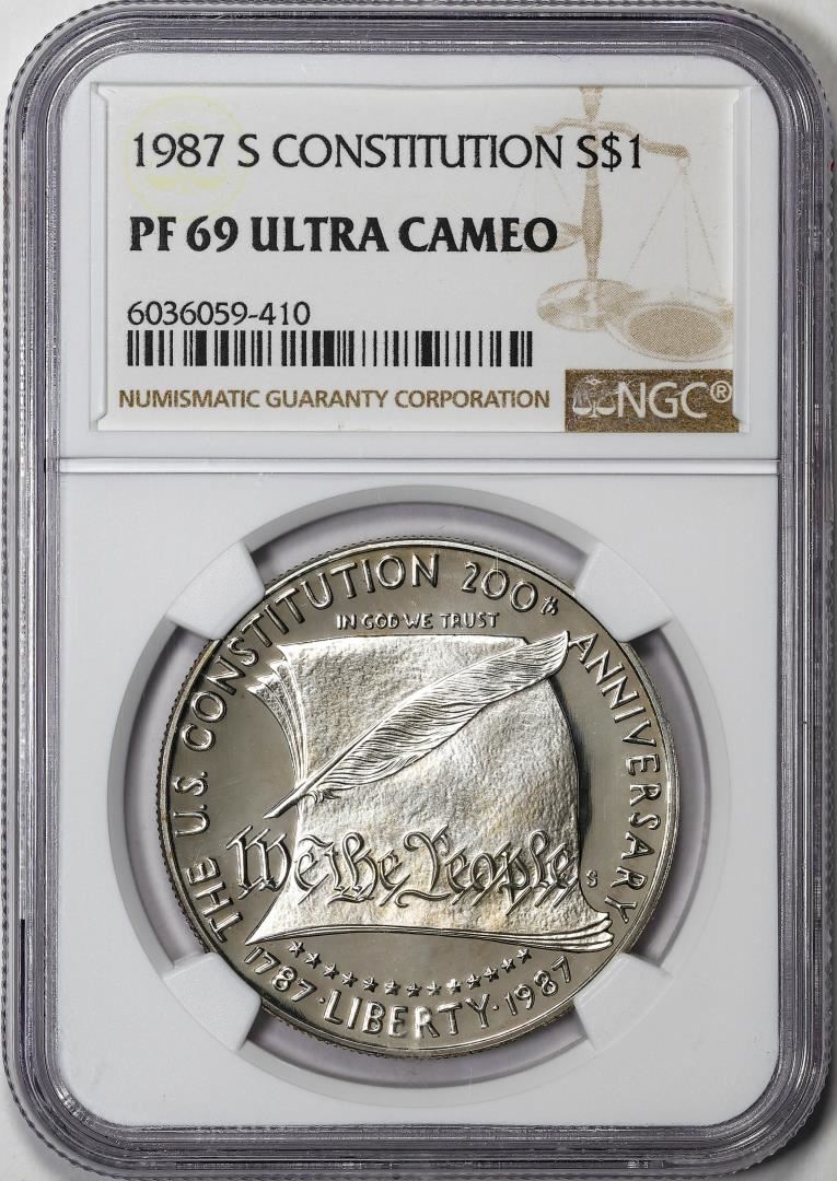 1987-S $1 Proof Constitution Commemorative Silver Dollar Coin NGC PF69 Ultra Cameo