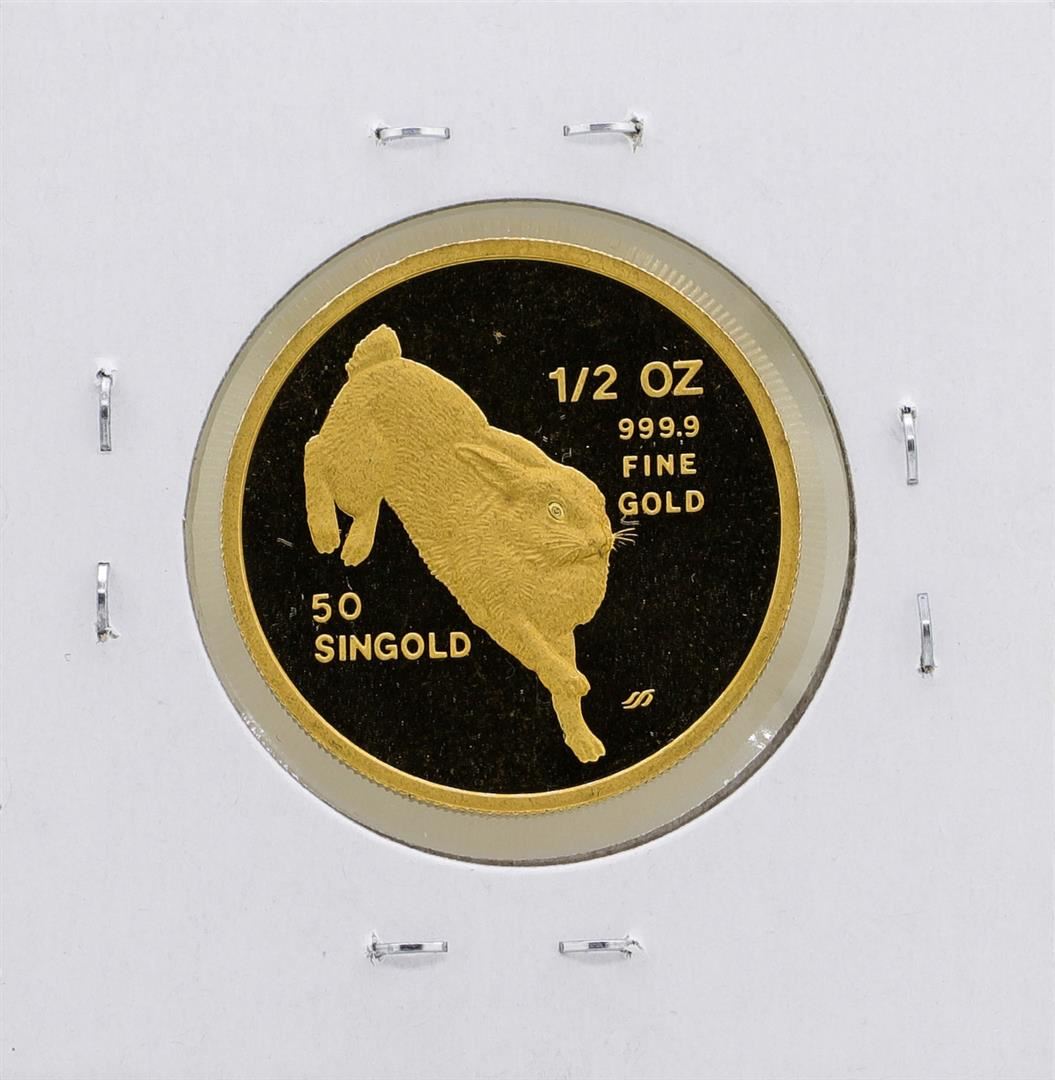 One 1987 Singapore 1/2 Oz. Gold Coin Year of the Rabbit.