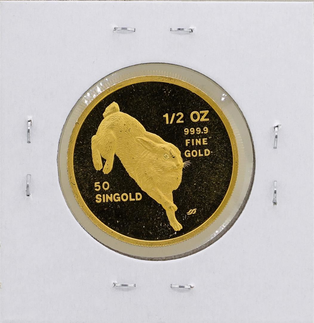 One 1987 Singapore 1/2 Oz. Gold Coin Year of the Rabbit.