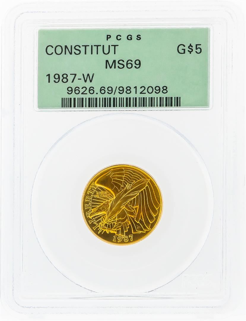 One 1987-W $5 Consitution Commemorative Gold Coin PCGS MS69. PCGS Graded.