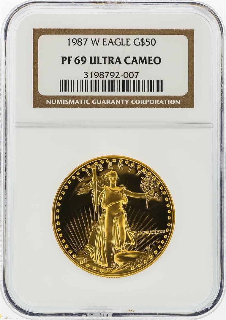 One 1987-W $50 American Gold Eagle Coin NGC Graded PF69 Ultra Cameo. NGC Certified.