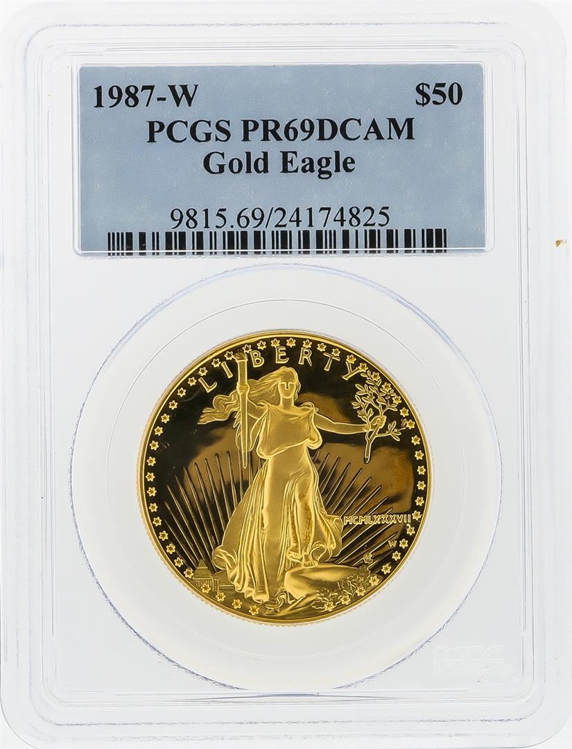One 1987-W $50 American Gold Eagle Coin PCGS Graded PR69DCAM. PCGS Graded.