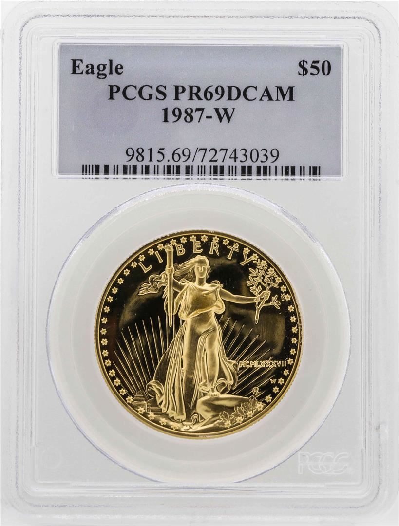 One 1987-W $50 American Gold Eagle Proof Coin PCGS PR69DCAM. PCGS Graded.