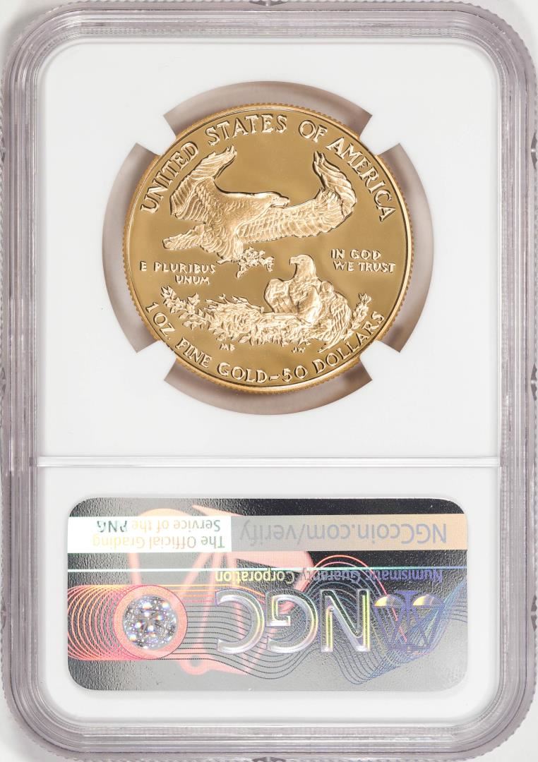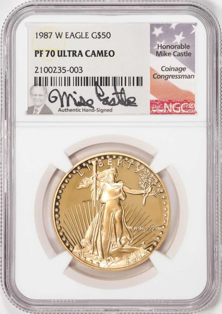 One 1987-W $50 Proof American Gold Eagle Coin NGC PF70 Ultra Cameo Castle Signature. NGC Certified.