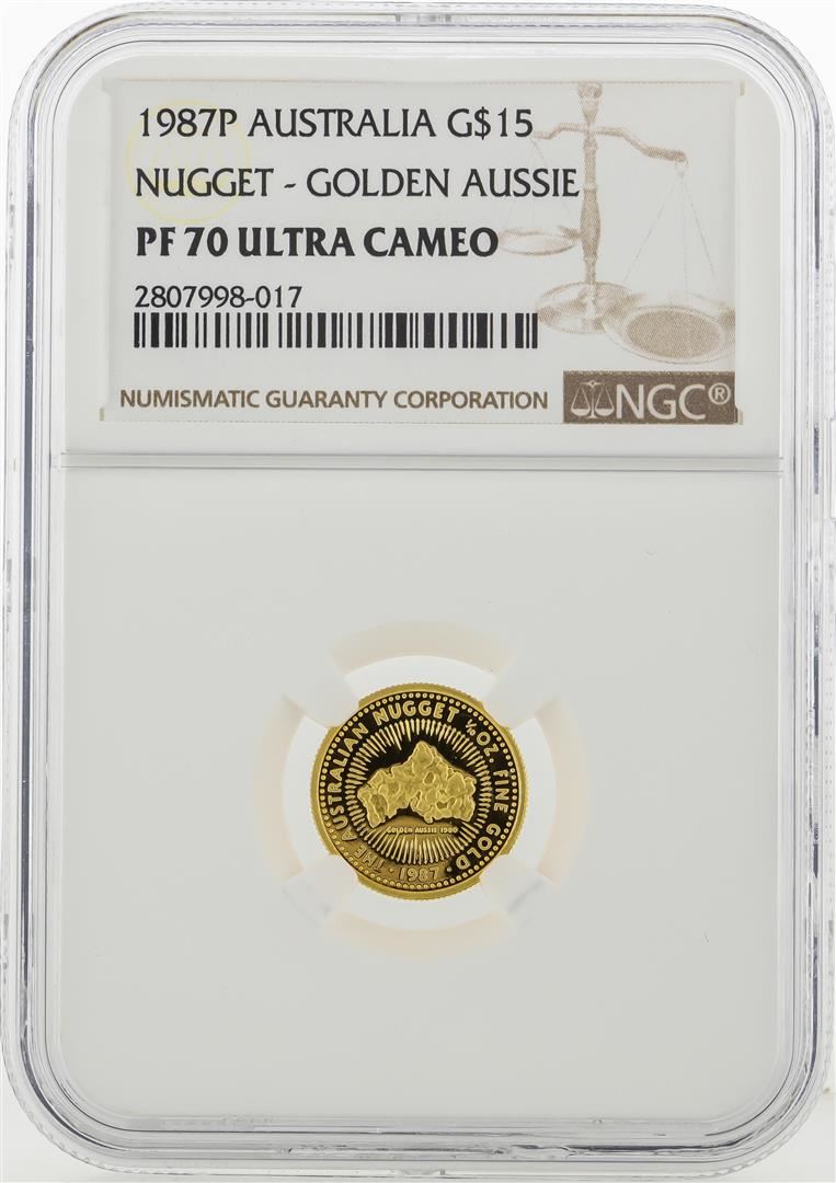 One 1987P $15 Australian Nugget Gold Coin NGC PF70 Ultra Cameo. NGC Certified.